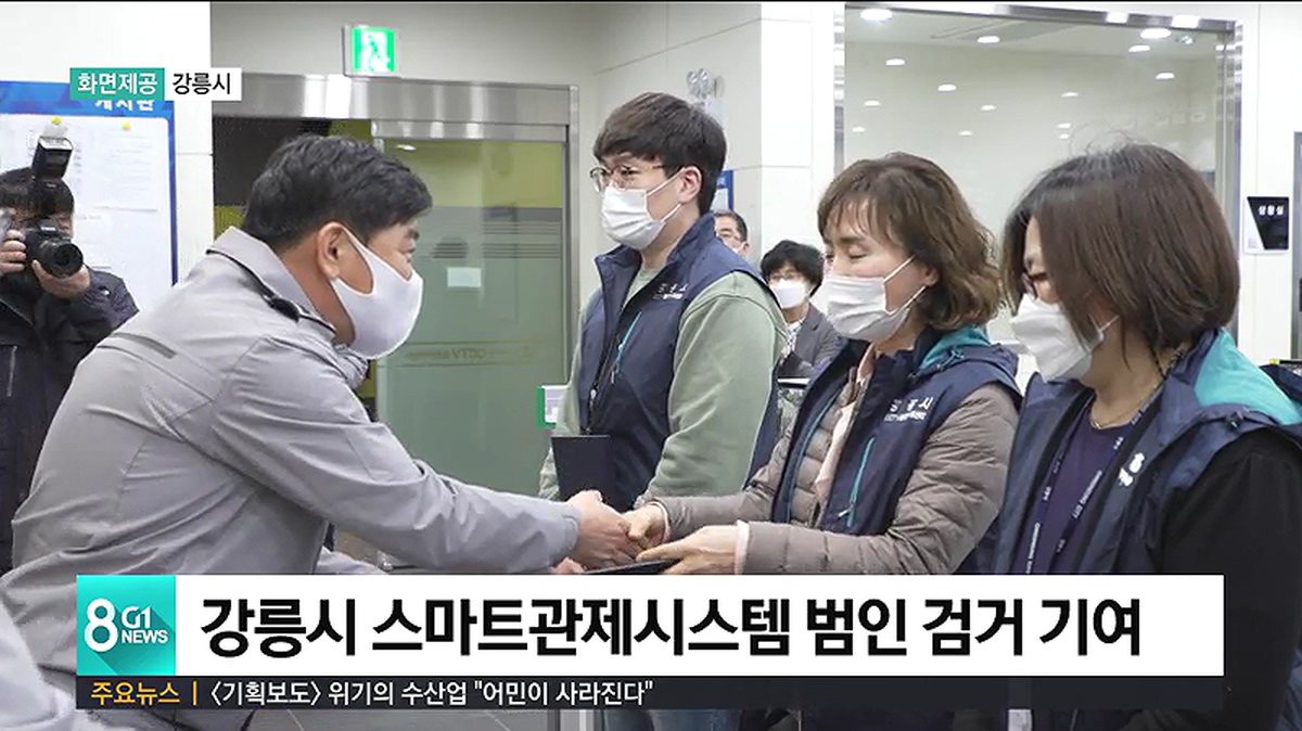 강릉시는 지난 26일 강릉에서 발생한 초등학생 인질 사건과 관련해 통합관제센터의 신속한 모니터링으로 피의자의 이동 경로를 추적, 사건 발생 4시간만에 검거하면서 근무자 4명이 강릉경찰서장의 감사장을 받았다고 밝혔습니다.