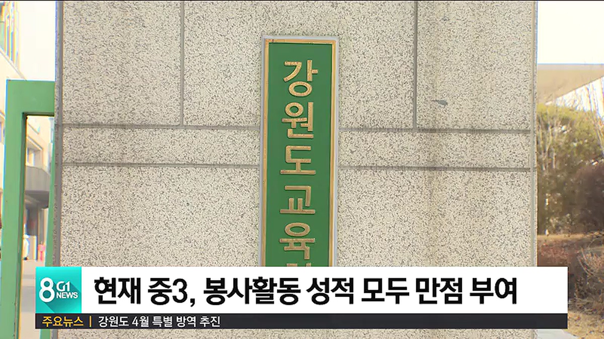 현재 중3, 봉사활동 성적 모두 만점 부여