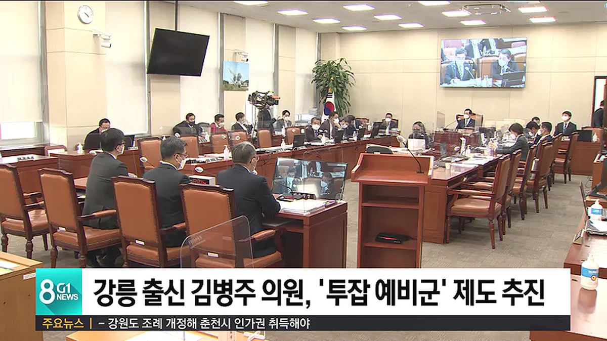 강릉출신 더불어민주당 김병주 의원은 평시에도 근무할 수 있는 예비군 병력을 확보하기 위해, 평시 복무 예비군 제도법안, 일명 '투잡 예비군법'을 대표발의했습니다.