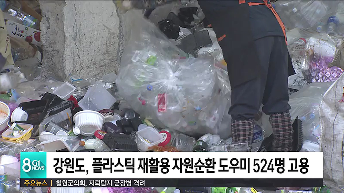 강원도는 최근 투명 페트병 자원화 사업 관련 국비 65억 원을 확보해, 공동주택 자원순환 도우미와 재활용 선별시설 지원 인력 등 모두 524명을 고용한다고 밝혔습니다.