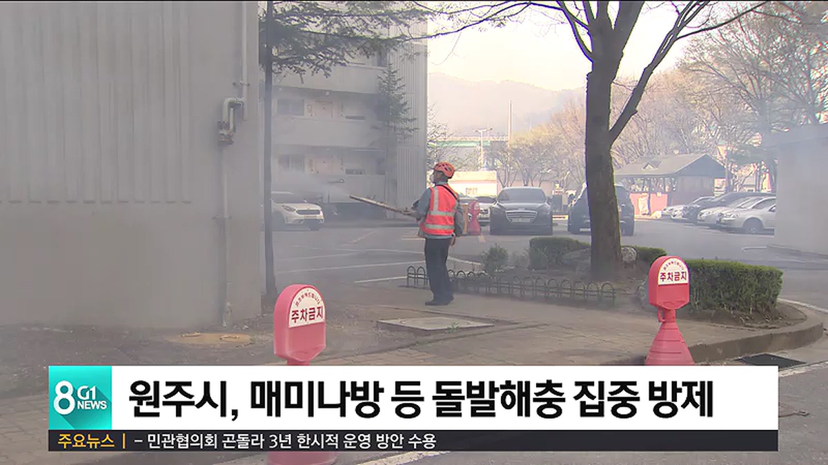 원주시는 본청과 9개 읍면에 17개팀 50여 명으로 구성된 지상방제단을 운영하고 공원과 가로수, 주요 도로변 등을 대상으로 집중 방제를 실시합니다.