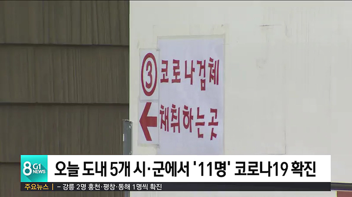 오늘 도내에서는 원주의 모 부대 소속 병사 6명이 코로나19에 확진되는 등 모두 11명의 신규 확진자가 발생했습니다.