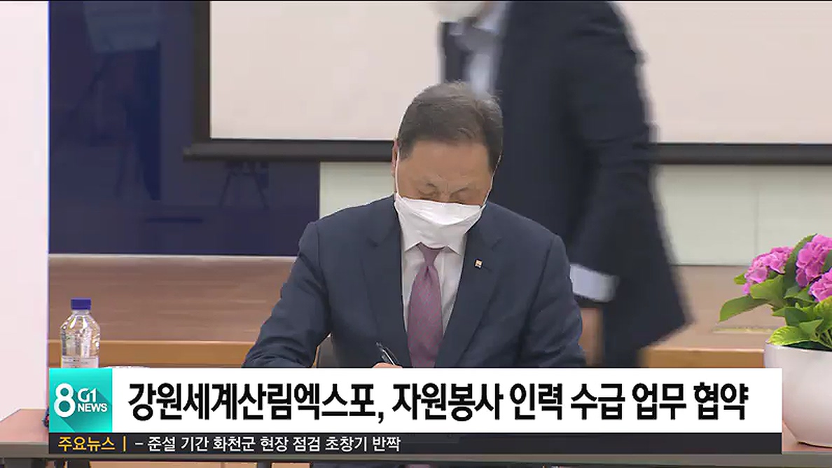 2022 강원세계산림엑스포 기간 원활한 행사 진행을 도울 자원봉사 인력 수급을 위한 업무 협약이 체결됐습니다.
