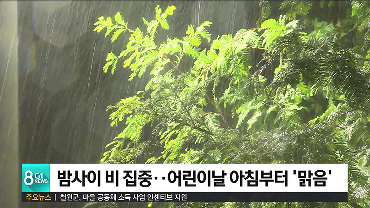 강수량은 영서지역 60mm, 영동지역은 20mm로 예상되며, 어린이날인 내일 아침부터는 차차 개겠습니다.