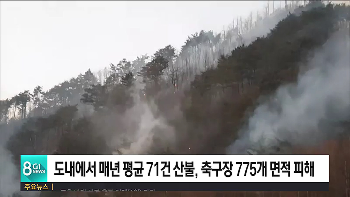 해마다 도내에서 발생하는 산불로 축구장 775개가 넘는 산림이 피해를 입는 것으로 나타났습니다.