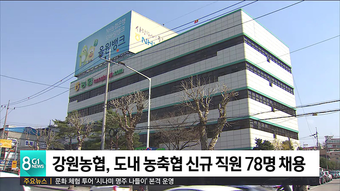 농협중앙회 강원본부가 청년고용 확대를 위해 도내 농축협의 신규 직원 78명을 채용합니다.