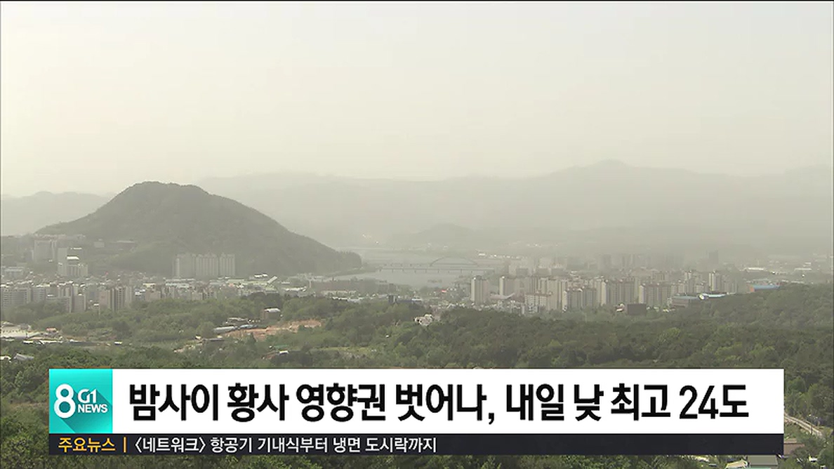 밤사이 황사 영향권 벗어나, 내일 낮 최고 24도