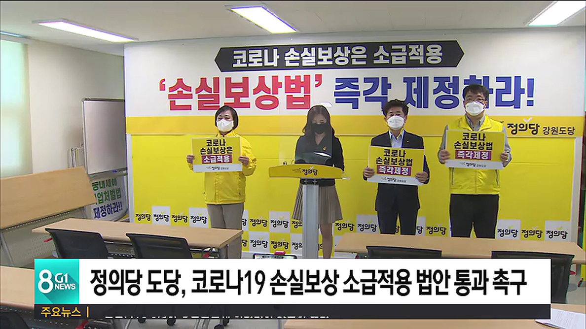 정의당 강원도당은 오늘 기자회견을 열고, 코로나19로 인한 손실 보상과 소급 적용 법안을 국회가 조속히 통과시켜야한다고 주장했습니다.