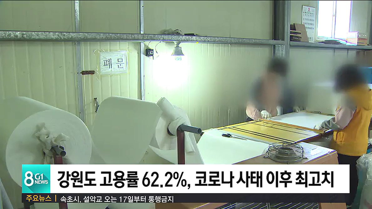 강원도 고용률 62.2%, 코로나 사태 이후 최고치