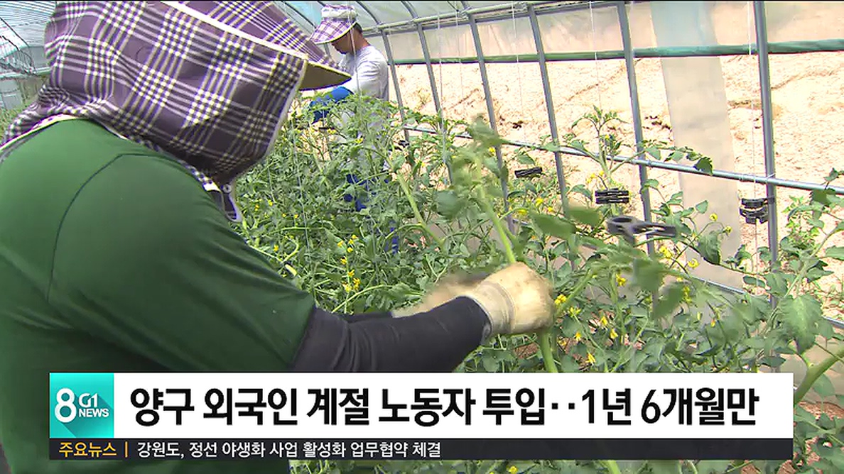 코로나19로 입국길이 막혔던 외국인 계절 노동자가 내일(13) 전국 최초로 양구군에 투입되면서 농촌 인력난에도 숨통이 트일 전망입니다.