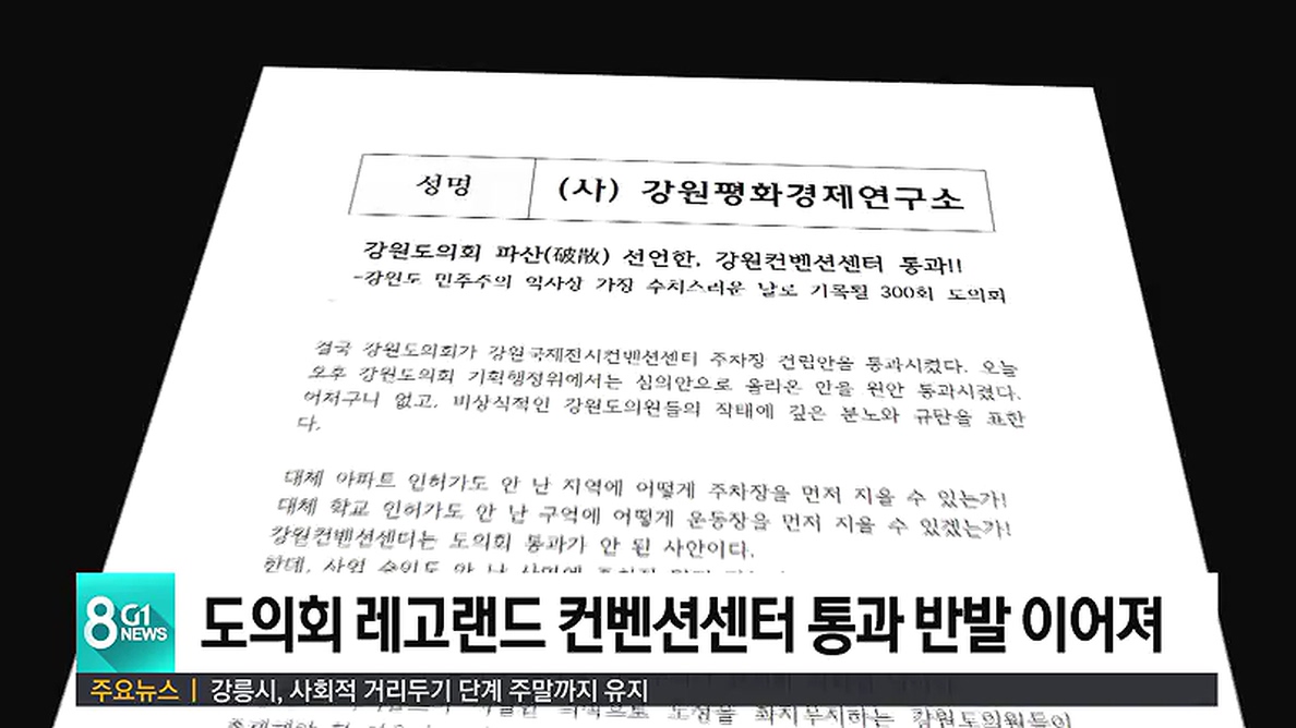 최근 강원도의회 상임위서 레고랜드 컨벤션센터 부지와 건물 취득 계획안이 통과된데 대해 시민단체 반발이 이어지고 있습니다.