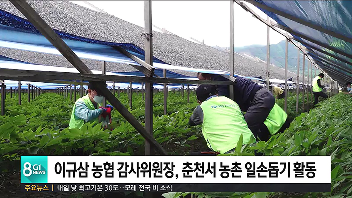 농협중앙회 이규삼 감사위원장이 영농철 인력난을 겪고 있는 농가를 돕기 위해 오늘(18일) 춘천에서 일손 돕기 활동에 나섰습니다.