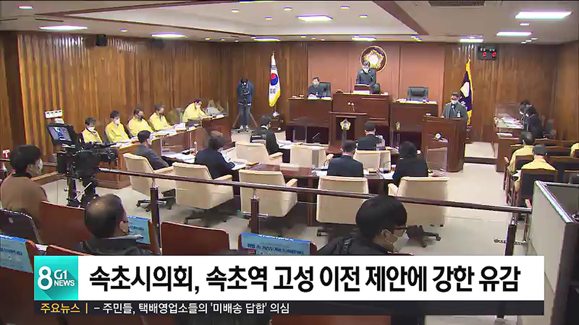 속초시의회는 오늘(20일) 입장문을 내고 "속초시가 동서고속철 선로와 역사의 지하화를 논의하고 있는 과정에서 아무런 협의나 논의 없이 이 같은 제안을 한 것은 양 시·군 간의 우호관계를 저해하는 행위"라며 "입장문 발표에 대해 강한 유감을 표명한다"고 밝혔습니다.