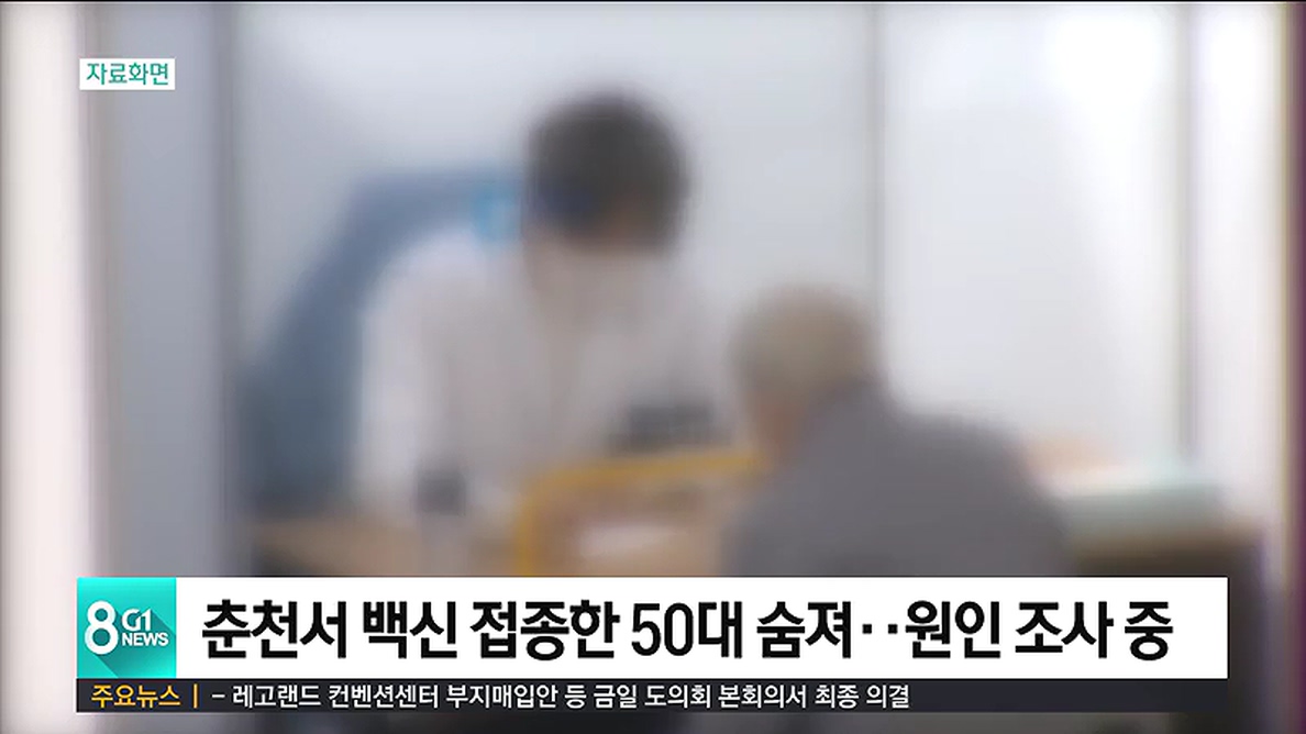 강원도 보건당국은 지난달 30일, 춘천 백신접종센터에서 아스트라제네카 백신 1차 접종을 한50대 A씨가 지난 18일 모 병원 중환자실에 입원한 지 이틀 만에 숨졌다고 밝혔습니다.