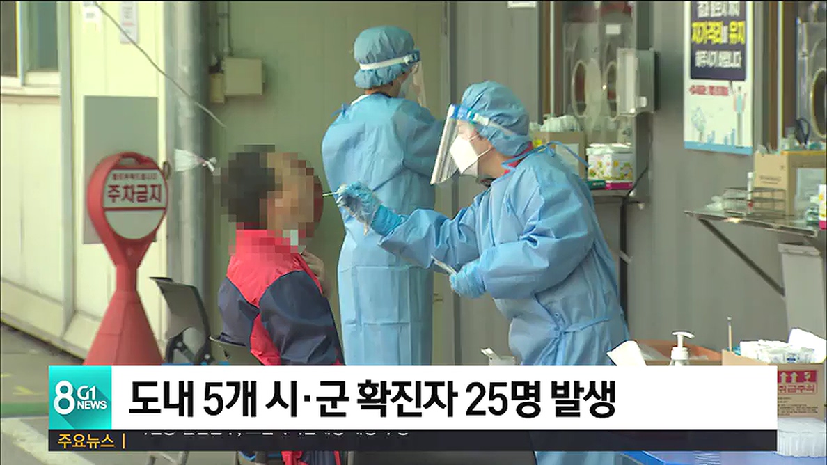 도내에서 유흥주점과 군부대, 외국인 노동자를 고리로 산발적 감염이 이어지고 있는 가운데, 오늘 5개 시·군에서 코로나19 신규 확진자 25명이 나왔습니다.
