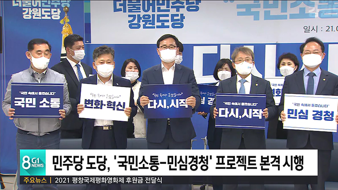 더불어민주당이 제21대 국회 임기 개시 1년을 맞아 추진하고 있는 '국민소통·민심경청 프로젝트-국민 속에서 듣겠습니다' 출범 행사가 민주당 강원도당에서 열렸습니다.