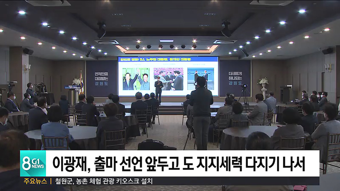 대선 출마 선언을 앞둔 더불어민주당 이광재 의원이 오늘 춘천을 찾아 지지세력 기반 다지기에 들어갔습니다.