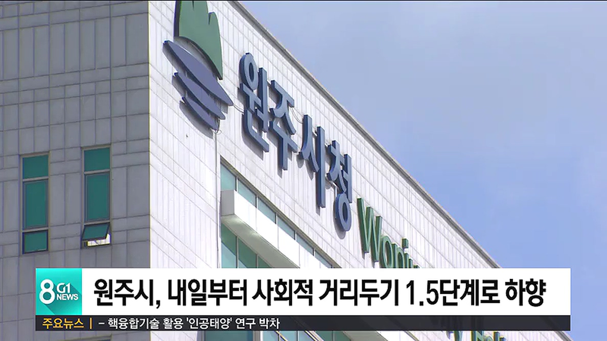 원주시가 내일 0시부터 사회적 거리두기 단계를 2단계에서 1.5단계로 하향 조정합니다.
