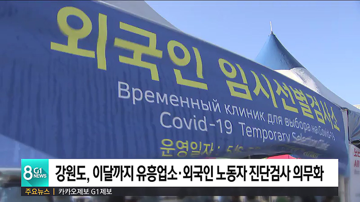 강원도는 이달 31일까지 도내 유흥업소 종사자와 외국인 노동자는 진단검사 의무화 행정명령에 따라 선제검사를 받아야 한다고 밝혔습니다.