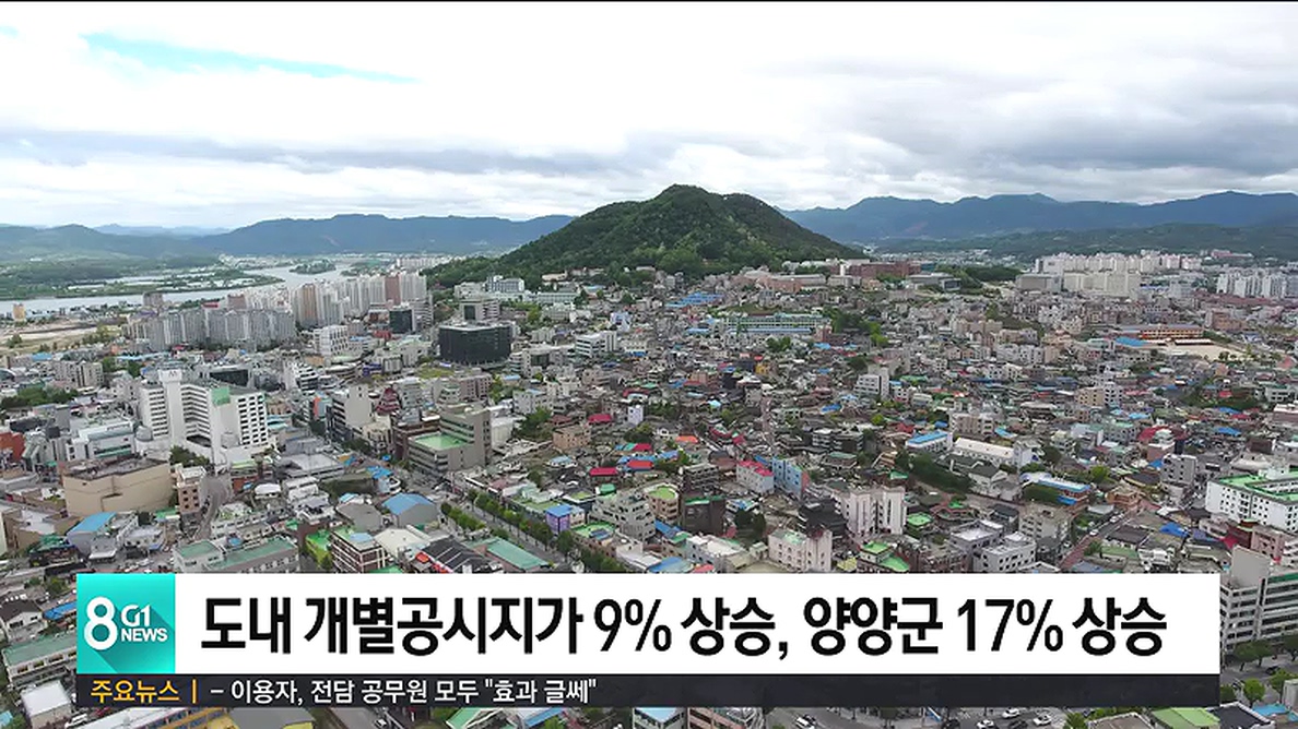 도내 개별공시지가 9% 상승, 양양군 17% 상승