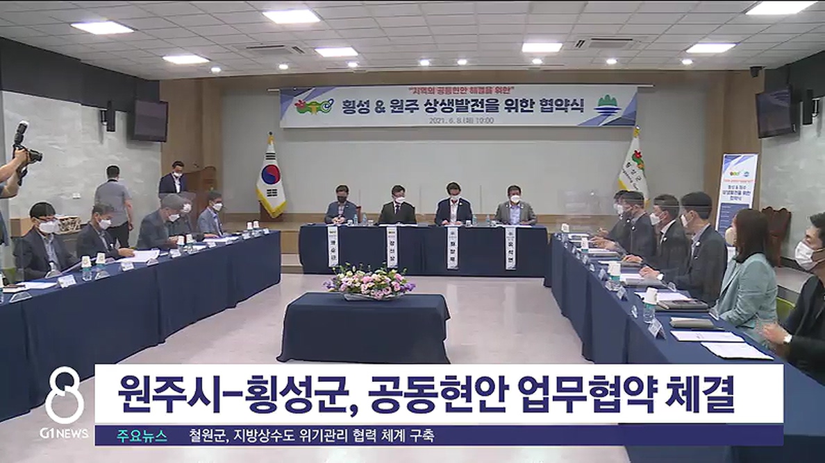 원주시와 횡성군은 오늘 횡성군청 회의실에서 공동 현안 추진을 위한 업무협약을 맺었습니다.