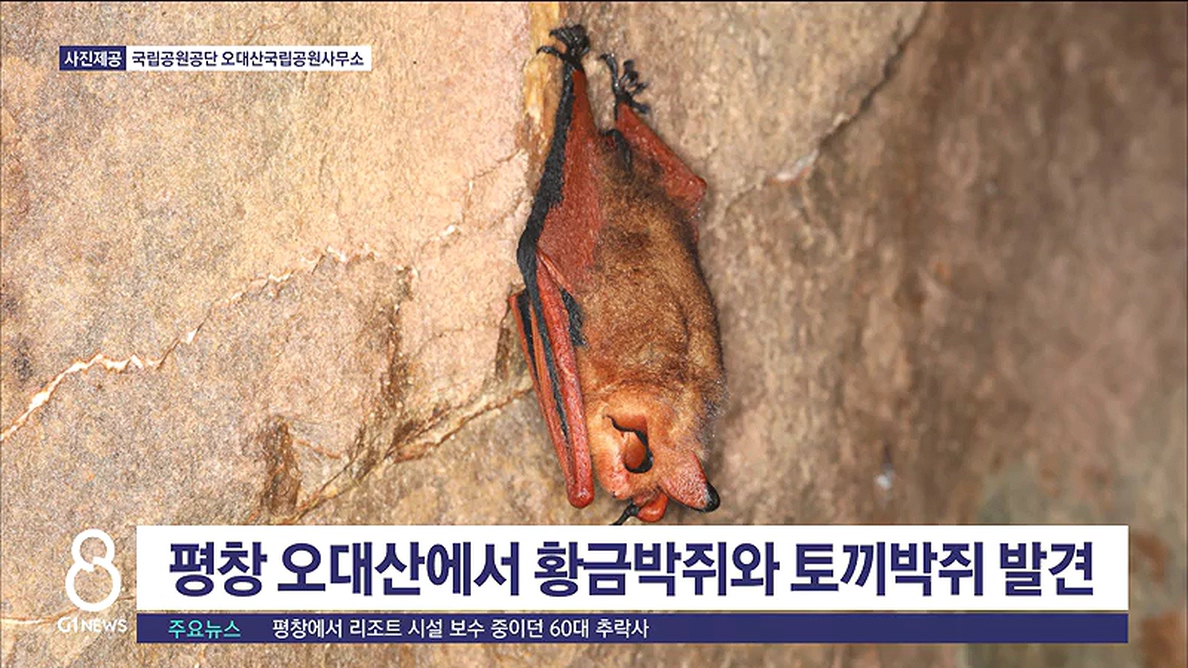 국립공원공단 오대산국립공원사무소는 최근 실시한 생물 다양성 조사 결과, 새롭게 발견된 박쥐 2종과 기존 관박쥐와 관코박쥐 등 4종이 오대산에서 서식하고 있는 게 확인됐다고 밝혔습니다.