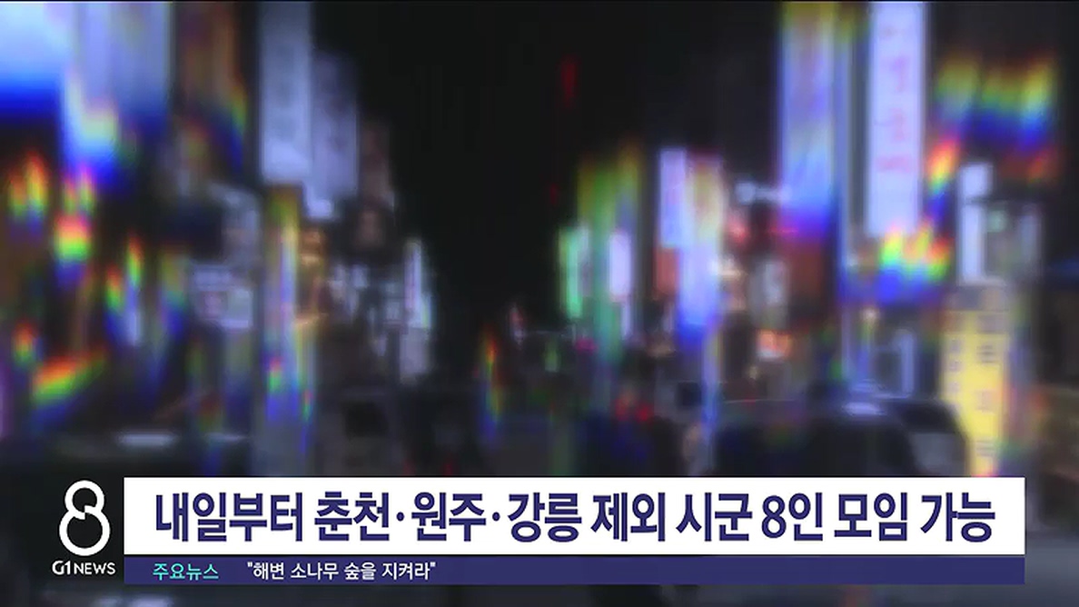 내일부터 춘천, 원주, 강릉을 제외한 도내 15개 시군에서 8명까지 사적 모임이 가능해집니다.