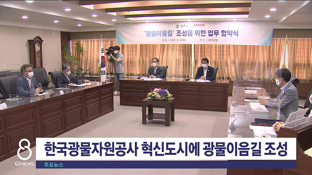 한국광물자원공사와 원주시는 오늘(15일) 업무협약을 맺고, 광물자원공사와 한국관광공사 사옥이 있는 사잇길 녹지에 광물이음길을 조성하기로 했습니다.