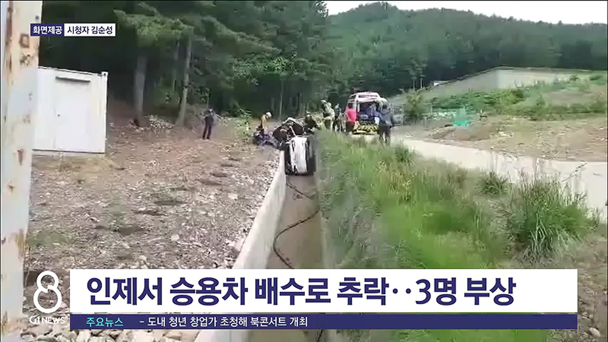 오늘 오후 3시 45분쯤 인제군 남면 신남리의 한 도로에서 승용차가 배수로로 추락했습니다.