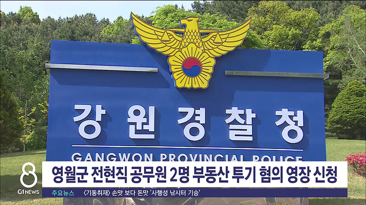 강원경찰청 부동산투기전담 특별수사대는 부패방지권익위법 위반 혐의로 영월군 간부급 공무원 A씨와 전 영월군 공무원 B씨에 대해 구속 영장을 신청했다고 밝혔습니다.