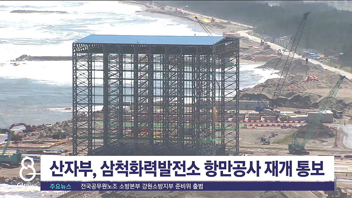 삼척화력발전소 항만공사는 해변침식 등의 문제로 지역주민들과 환경단체가 개선을 촉구한데 이어 국회 국정감사에서까지 문제화 돼 지난해 10월부터 공사가 중단돼 왔습니다.