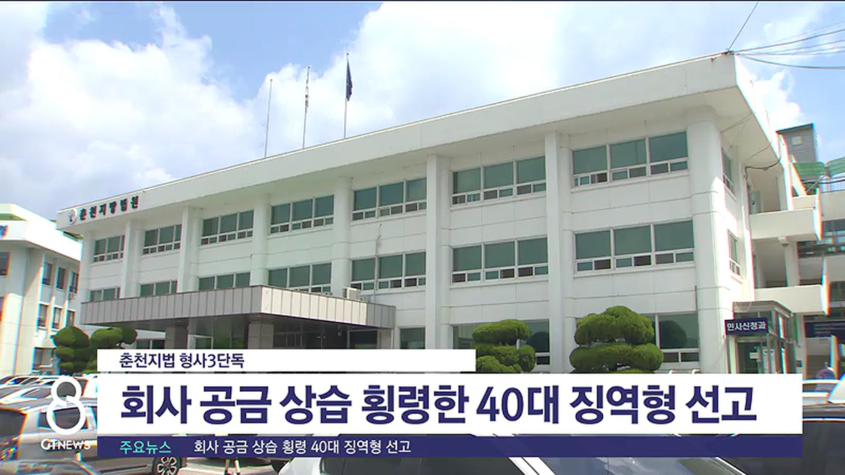 춘천지법 형사3단독 정수영 부장판사는 업무상 횡령 혐의로 기소된 40살 A씨에게 징역 1년을 선고했습니다.