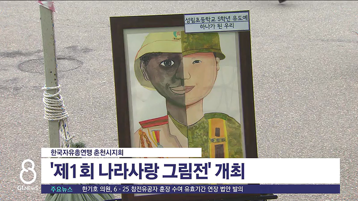 한국자유총연맹 춘천시지회가 주최한 '제1회 나라사랑 그림전'이 오늘 춘천 에티오피아 한국전 참전 기념관 앞에서 열렸습니다.