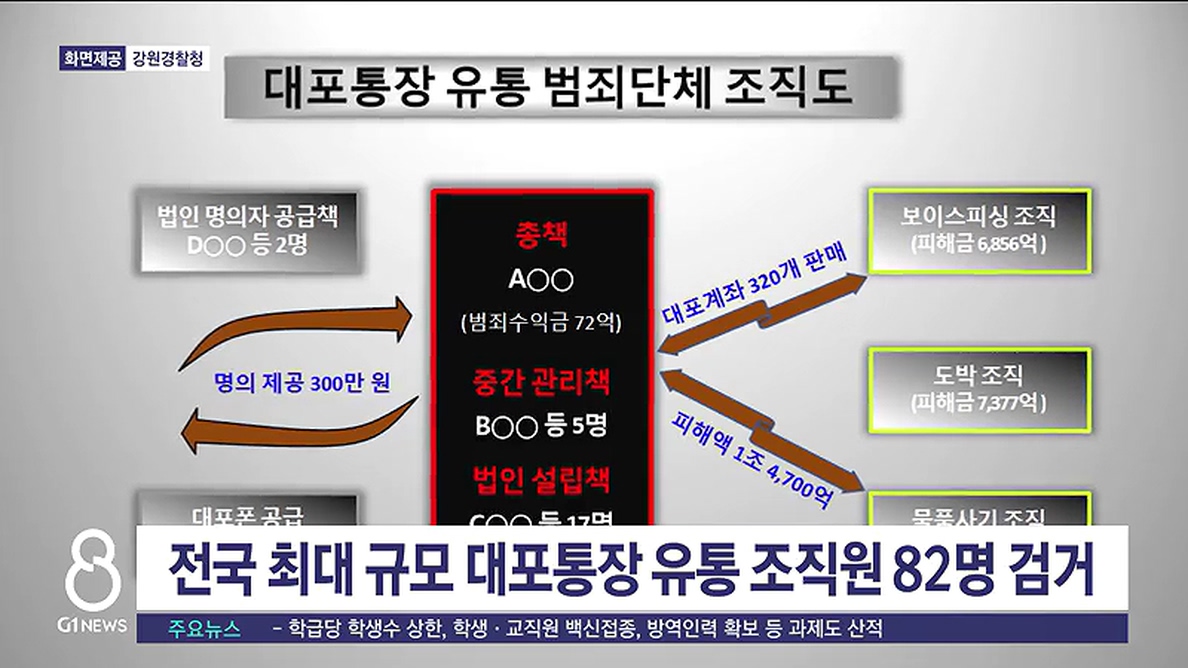 전국 최대 규모 대포통장 유통 조직원 82명 검거