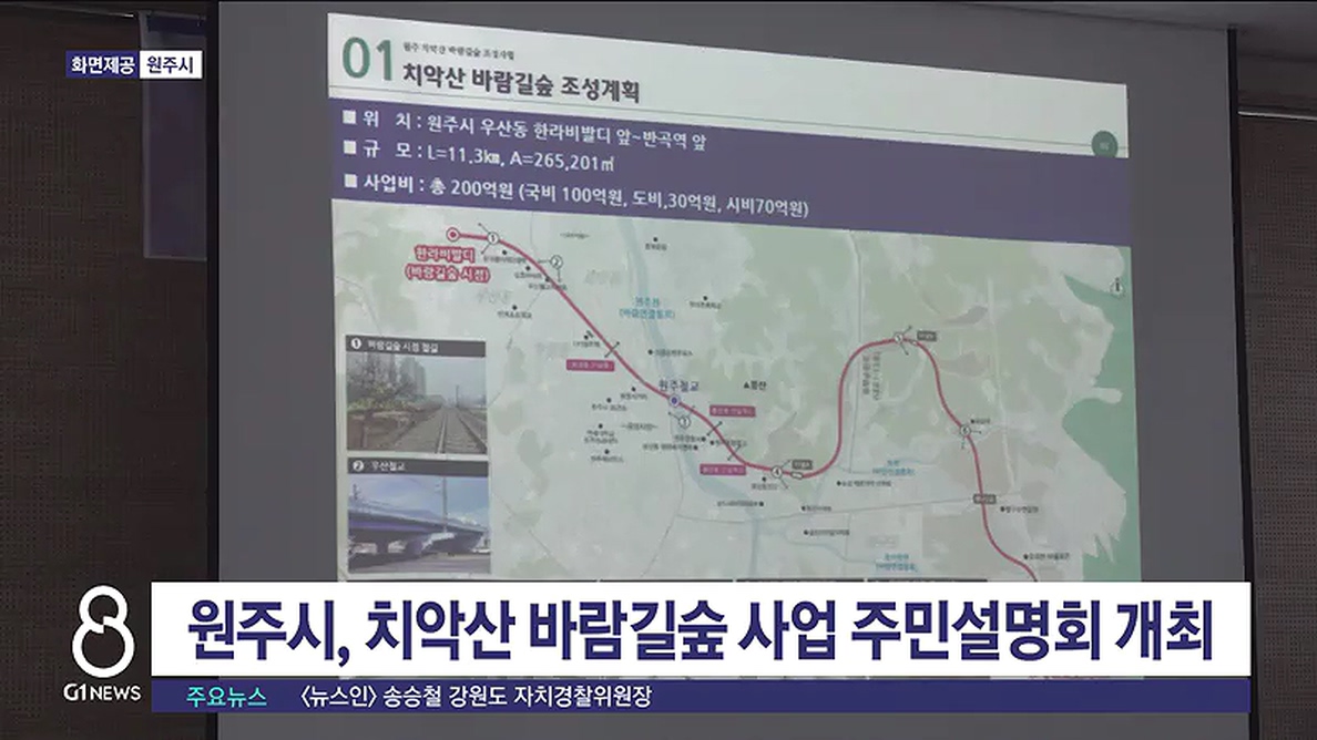 원주시가 철도 유휴부지 활용사업으로 추진 중인 '치악산 바람길숲 조성사업' 주민설명회가 오늘 봉산동 행정복지센터에서 열렸습니다.