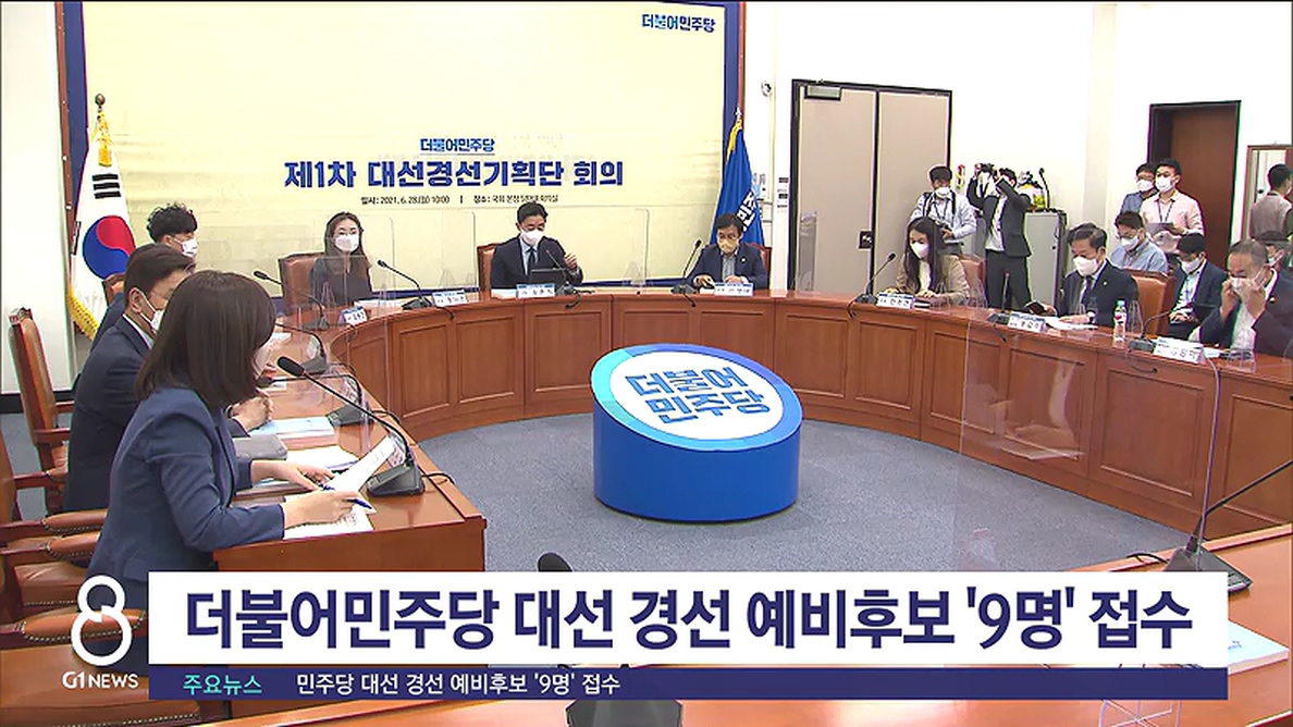 민주당이 지난 28일부터 오늘까지 대선 경선 예비후보 등록을 받은 결과, 도 출신 이광재 의원과 최문순 지사를 비롯해, 이재명 경기지사와 이낙연 전 대표, 정세균 전 국무총리 등 모두 9명이 접수했습니다.
