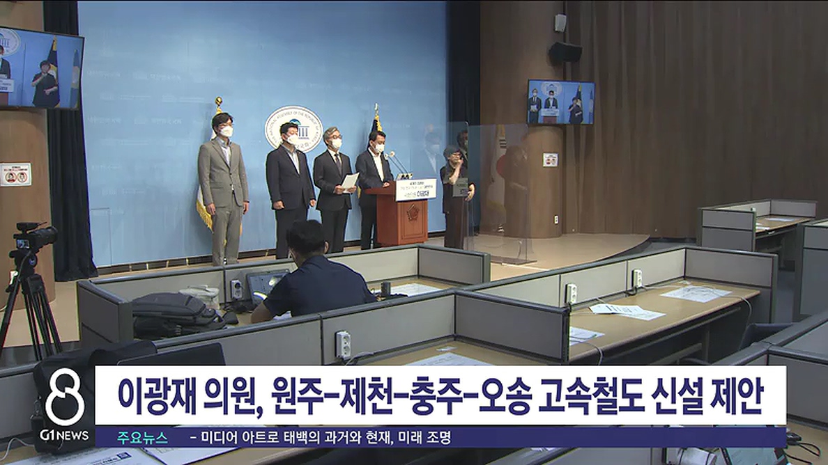 더불어민주당 이광재 의원과 국민의힘 엄태영 의원은 오늘, 국회에서 공동 기자간담회를 갖고 , 원주-제천-충주-오성을 잇는 고속철도 신설을 제안했습니다.