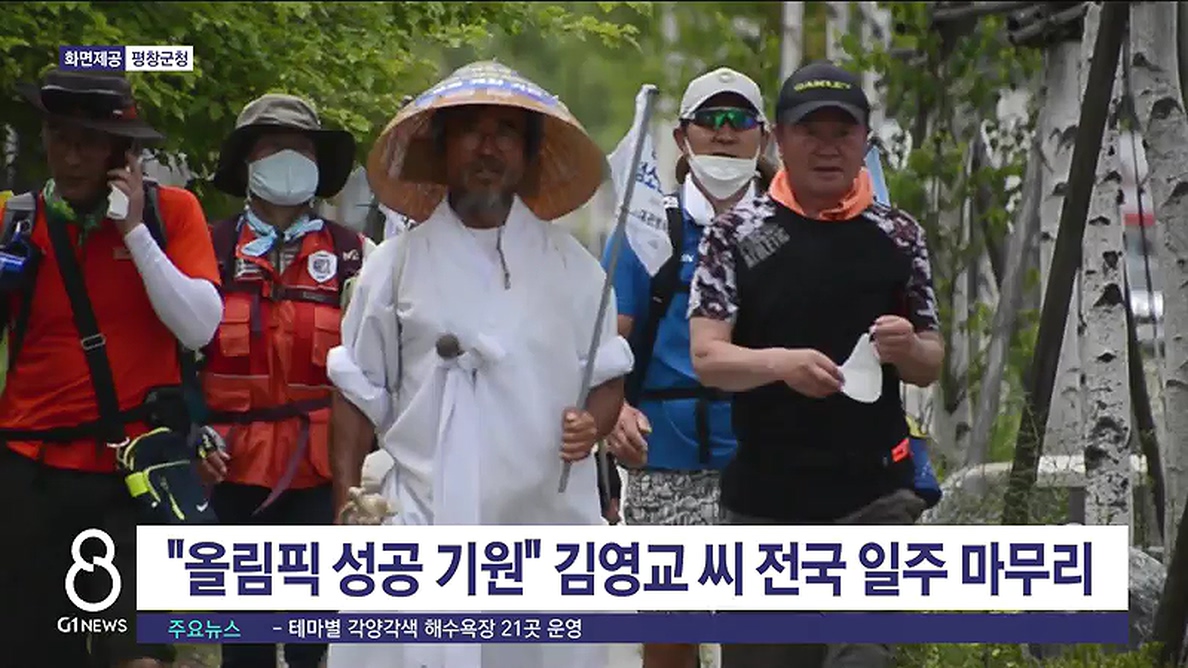 2024 강원동계청소년올림픽 성공 개최를 기원하며 전국 도보 일주에 나선 김삿갓 시인의 후손 김영교 씨가, 오늘 평창에서 대장정을 마무리했습니다.