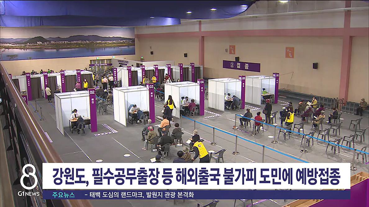 강원도는 주요 경제활동이나 필수 공무 출장 등으로 해외출국이 불가피한 도민을 대상으로, 코로나19 백신접종을 시행한다고 밝혔습니다.