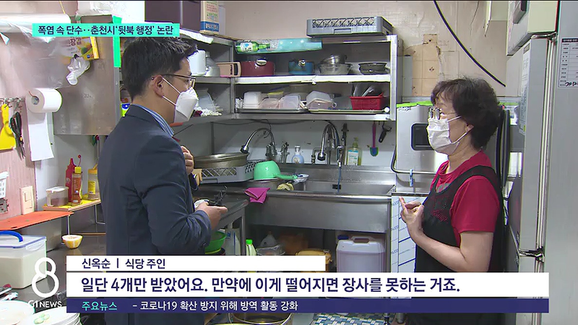 "제일 당황한 건 예고 없이 된 거, 단수는 할 수 있는데 사전 준비 없이 갑자기 단수가 돼서 그것도 전체한다고 하니까. 한 곳이 파손됐다고 하는데 거기 하나 때문에 춘천 전역이 이렇게 되나.."