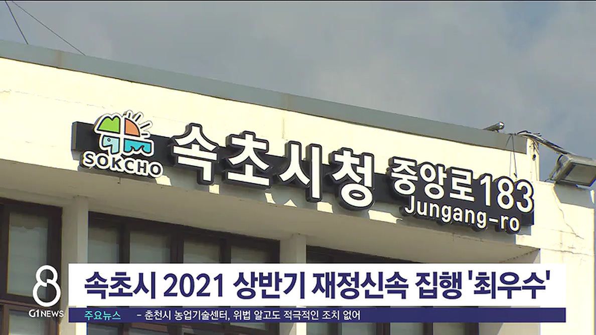 속초시는 2021년 상반기 지방재정 신속집행 평가에서 도내 최우수 기관으로 선정돼 특별조정교부금 3억 원을 확보했다고 밝혔습니다.