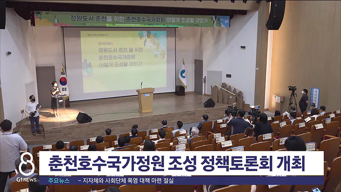 '춘천호수국가정원 조성 정책토론회'가 오늘 춘천시청 대회의실에서 열렸습니다.