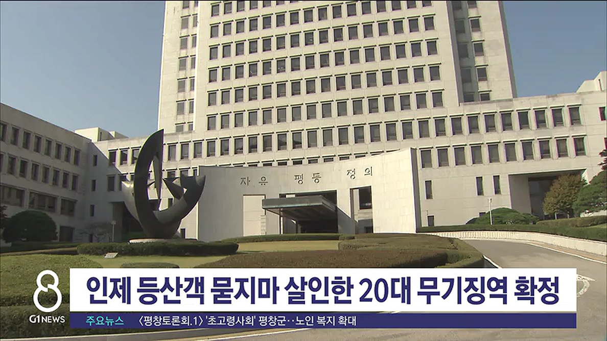 작년 7월 인제에서 일면식 없는 50대 여성 등산객을 살해한 20대에게 무기징역이 확정됐습니다.