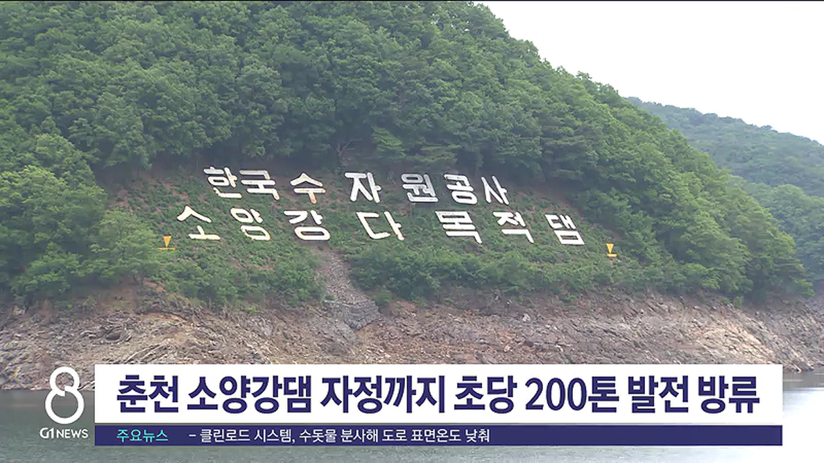 한국수자원공사 소양강댐지사는 춘천시 요청에 따라 오늘 오후 5시부터 자정까지 7시간 동안 초당 최대 200톤씩, 총 360만톤의 물을 방류할 계획이라고 밝혔습니다.