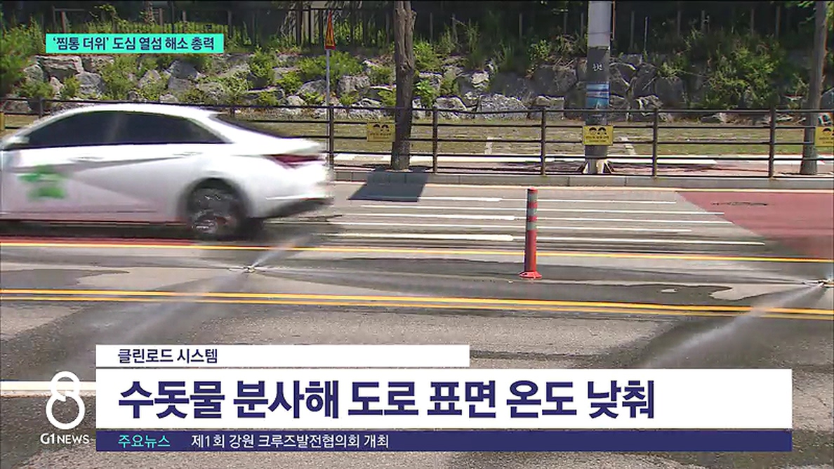 "폭염특보가 발효되면 하루에 세 번 도로에 물을 분사해서 복사열을 식혀주는 기능을 하고 있습니다."