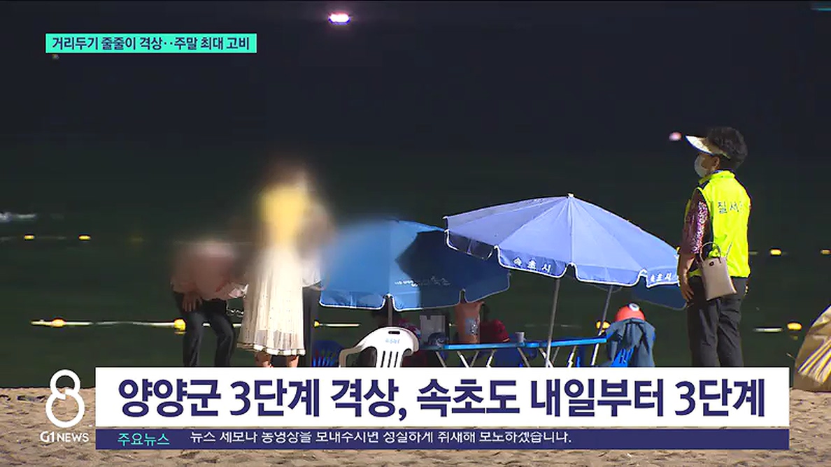 거리두기를 격상해 해수욕장 밖에서라도 접촉을 차단할 수 밖에 없어서,
