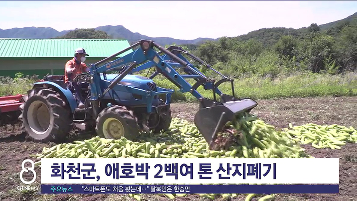 전국 애호박 최대 주산지인 화천군이 애호박 물량 2백여 톤을 다음달 3일까지 산지폐기하기로 했습니다.