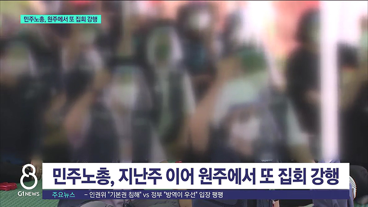 1인 시위 원칙을 어기고 지난주 수백 명대 집회를 연 민주노총이 원주에서 또 집회를 가졌습니다.