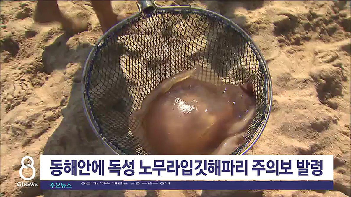 동해안에 독성 노무라입깃해파리가 다수 출현해 주의보가 발령됐습니다.