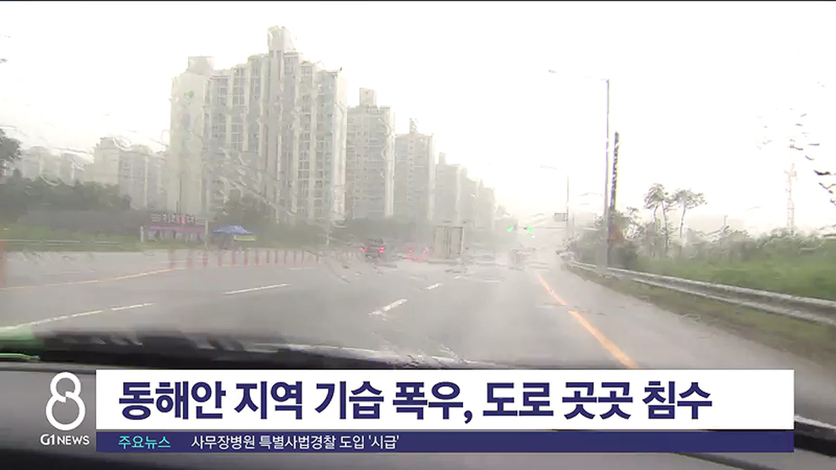동해안 지역 기습 폭우, 도로 곳곳 침수